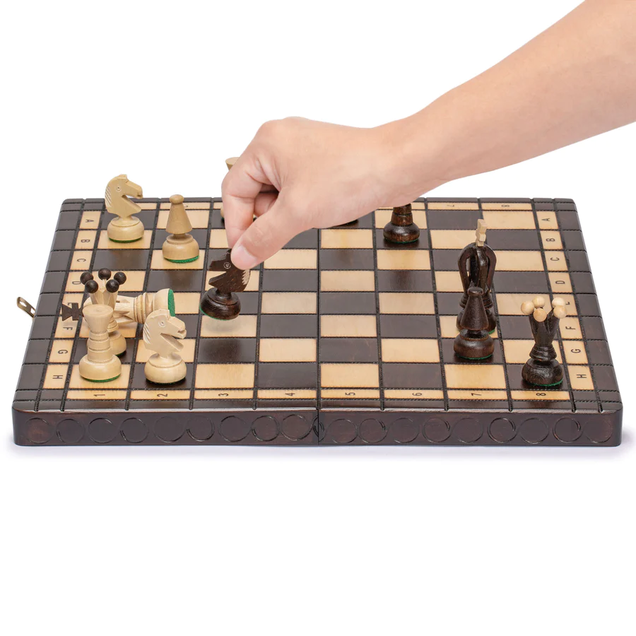 - Its design is based on the traditional pattern chess game, allowing for instant recognition and use. This model is perfect for children’s and travel chess.