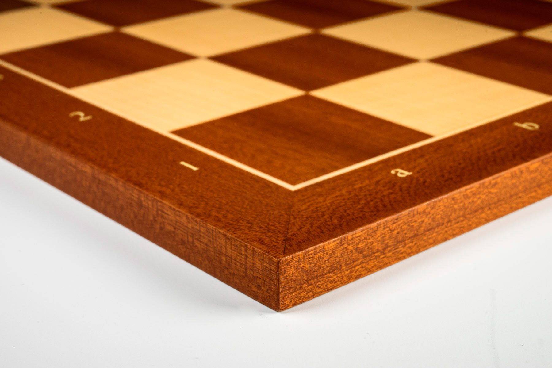 This 15.75 inch Mahogany chess board is the next big thing in chess. The wooden chess board is durable and sturdy, thanks to the mahogany construction and mat finish. The board features sycamore light squares, and a Sapele border provides the best combination of complimenting beauty.