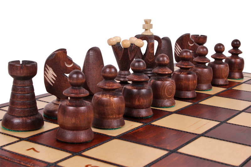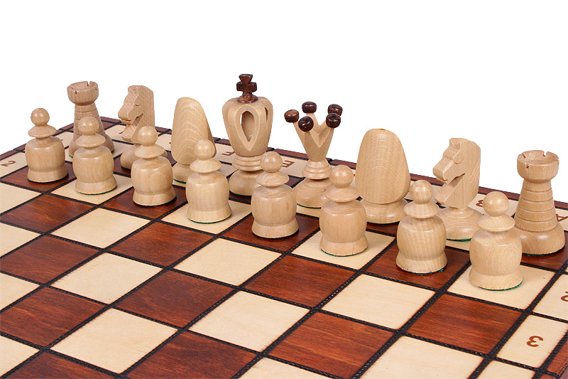 17 Inch Chess Set King Light is the light version of our large King Chess set. It goes with larger chess pieces of a unique King’s style. They are made from hornbeam and sycamore wood. The folding chess board has an insert tray for the chess pieces storage inside. King Light set is one of the best chess sets in our vast selection. Unique shape of chess pieces brings its fresh and modern highlight to the traditional chess set.