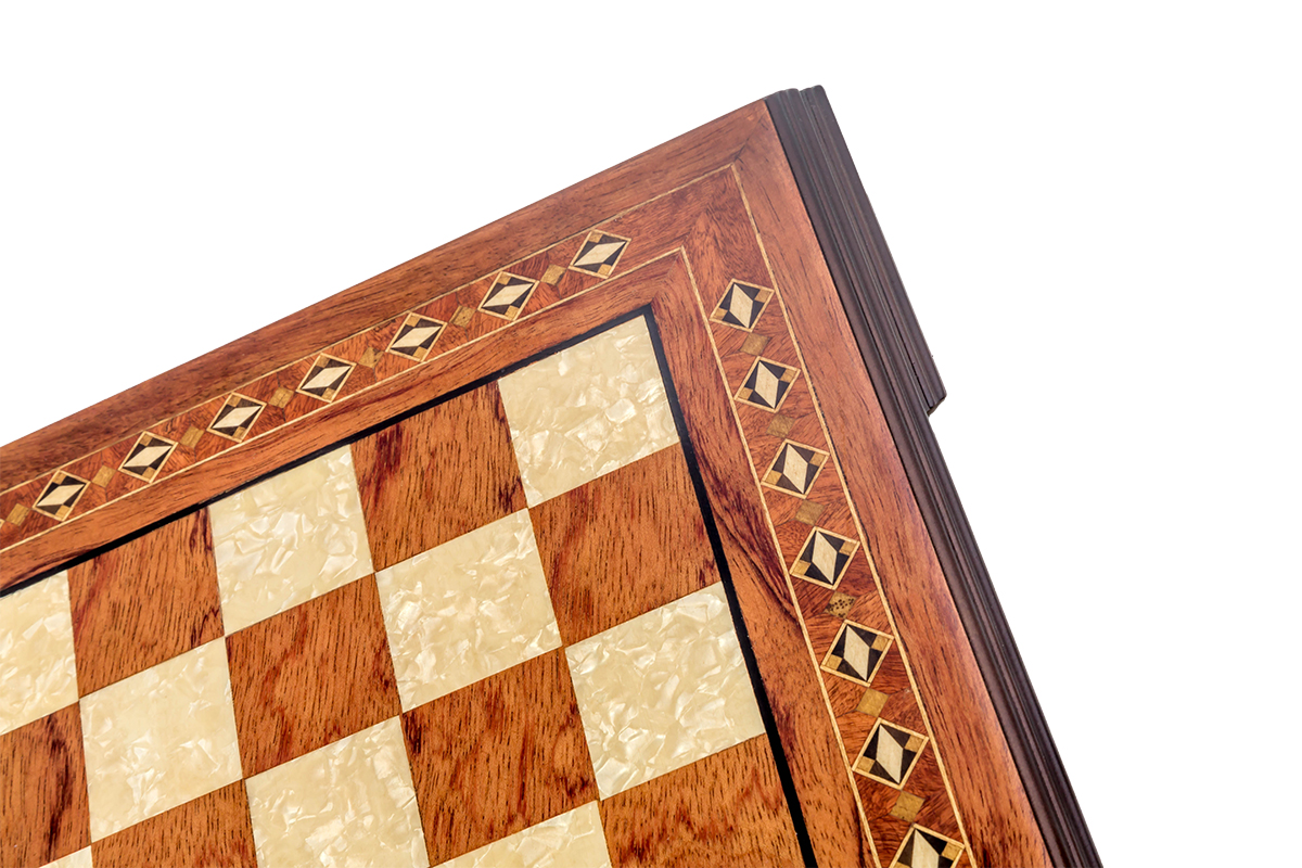 This chess is produced with the mother of pearl and wooden mosaic art.