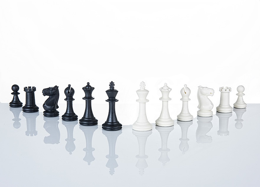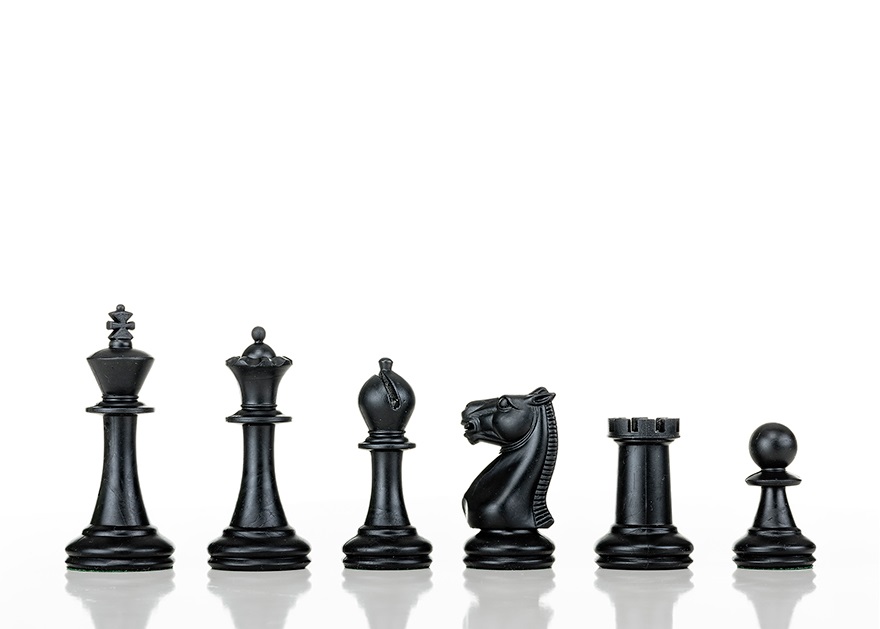 Plastic Chessmen / Pieces, Staunton small, wide feet, felted, in polybag.