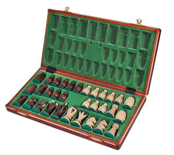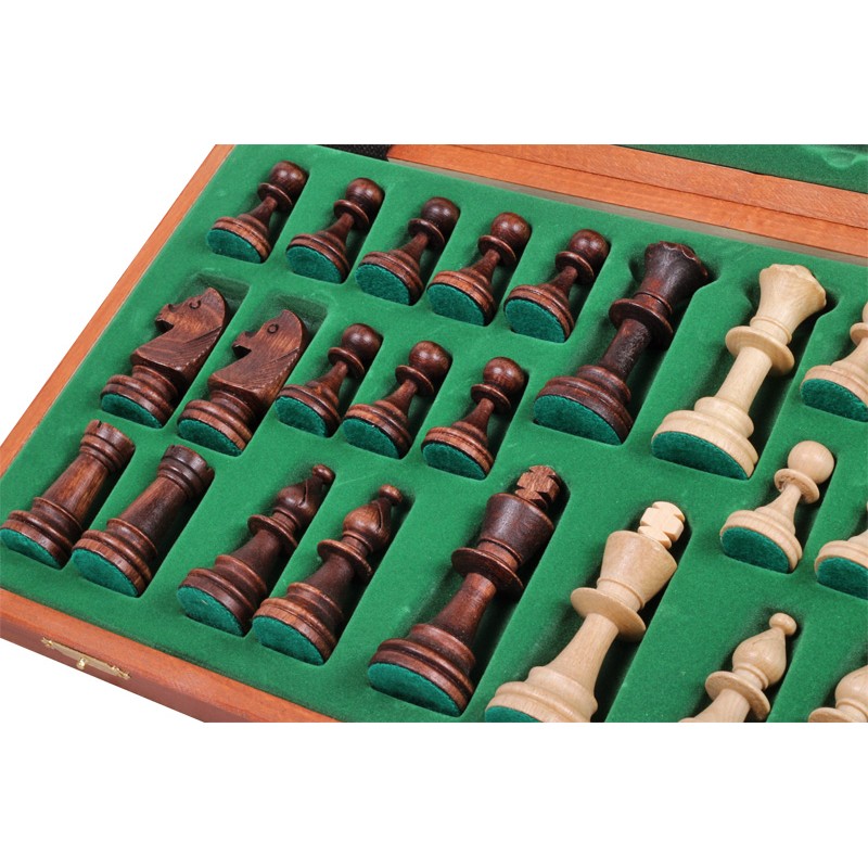 This stylish yet compact 18 inch tournament chess set includes hand crafted hornbeam pieces with felt base and perfectly finished board with insert tray for the chess pieces storage inside. With classic Staunton chess designs reinterpreted into a streamlined style, this set is extremely versatile and perfect for display anywhere from our unique selection of chess sets.