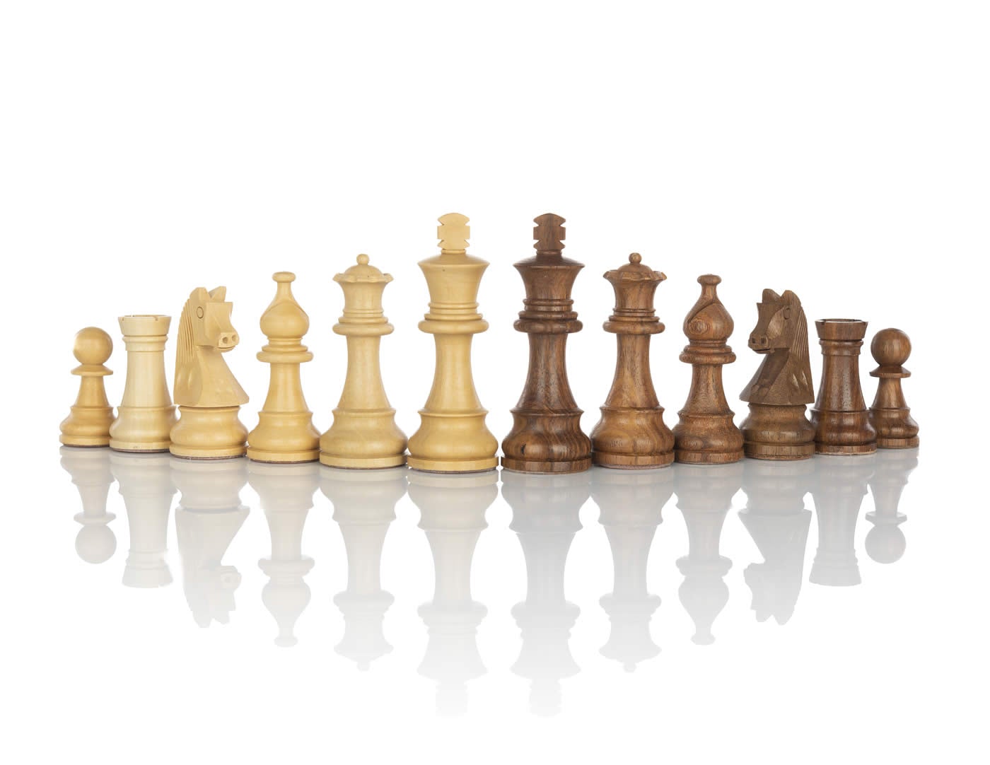 The pieces were sensibly designed to play with wide bases requiring a minimum of 2.12″ chessboard squares.