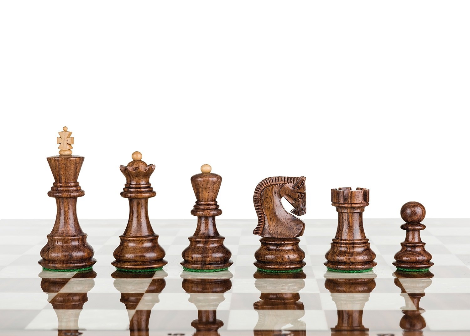 The 19 Inch Chess Set Royal Rose chess pieces are superbly proportioned and nicely weighted for their size. Hand turned and naturally polished from sheesham wood, these pieces display some of the classic characteristics of the original Staunton design but have more contemporary lines and curves that bring them to life.