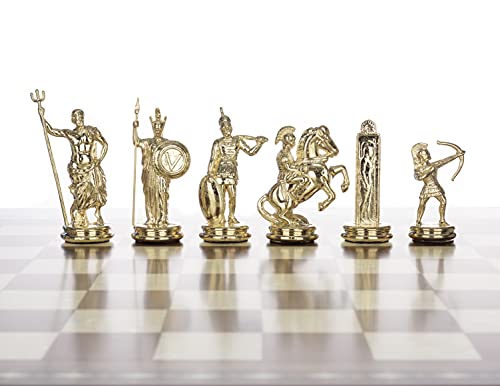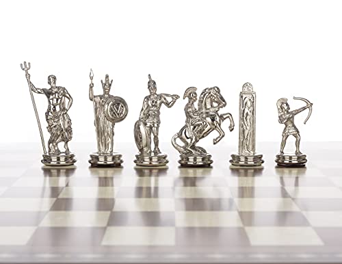Greek sculptors frequently depicted this divine rivalry in their works. The King is a replica of the renowned statue “Poseidon of Melos” (2nd century B.C.), while the Queen represents the esteemed “Athena Promachos” (450 B.C., Acropolis Museum). The Bishop draws inspiration from a bronze Hellenistic statue, and the Knight is modelled after a segment of the Parthenon’s marble facade, sculpted by Pheidias. The Rook replicates one of the most admired Attic stelae, dedicated to Aristion, a young warrior who fell in battle. Finally, the Pawn is based on a bronze statue of a fully armoured warrior from 500 B.C.