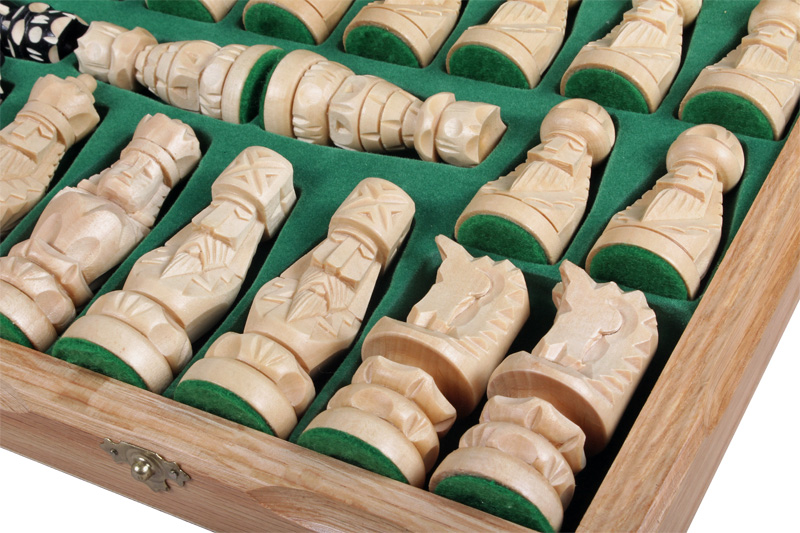 21 Inch Pope Chess Set is one of a kind masterpiece from our themed chess sets collection. These weighted and fully hand-crafted chessmen are made from lime wood. The folding chess board of this decorated set has an insert tray for the chess pieces storage inside.