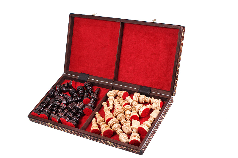 24 Inch Mars Chess Set has a unique design thanks to it richly ornamented chess pieces, fully hand crafted and made from sycamore wood. The folding chess board has a felt lining inside. It has been one of the best selling chess sets from our decorative line. With 6.2 Inch King it’s perfectly suits 23.62 Inch Beech and Birch wood chess board carved with attention to details to bring the atmosphere of Mars into the game.