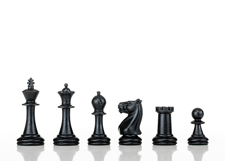 Plastic Chessmen / Pieces, Staunton small, wide feet, felted, in polybag.
