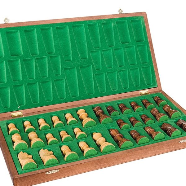 Chess pieces are made from high quality indian wood. The set is tournament size, with king height 95mm.
