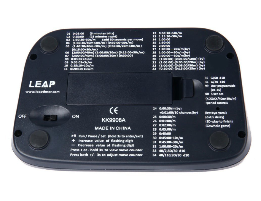 This neat clock provides all the functionality you need to play chess at all levels and has a number of conveniently pre-programmed time controls used often.