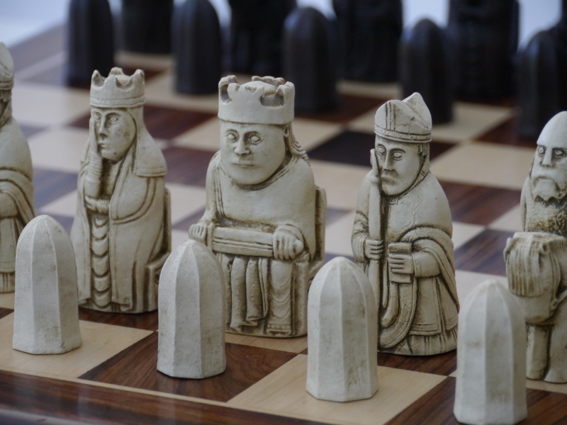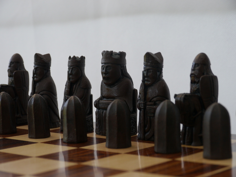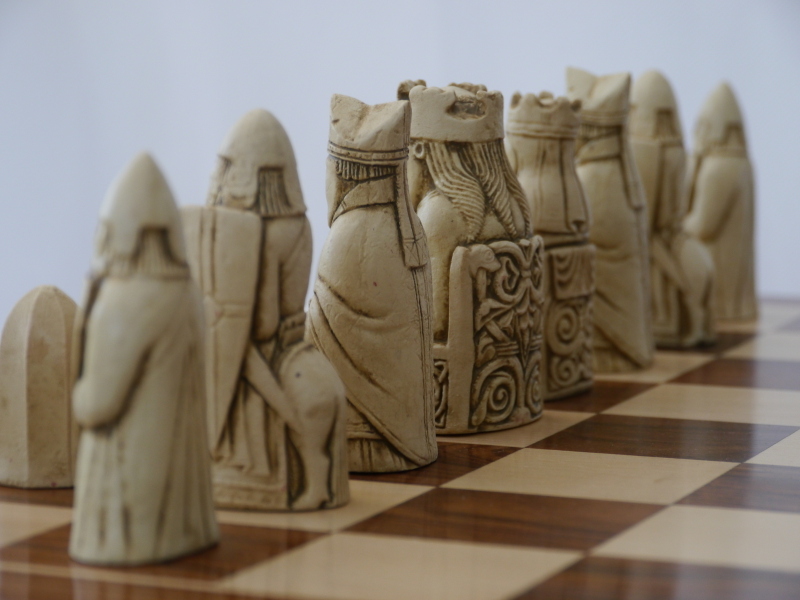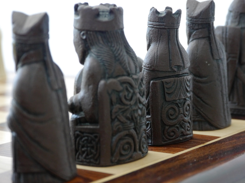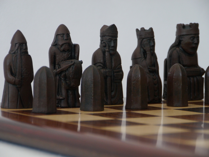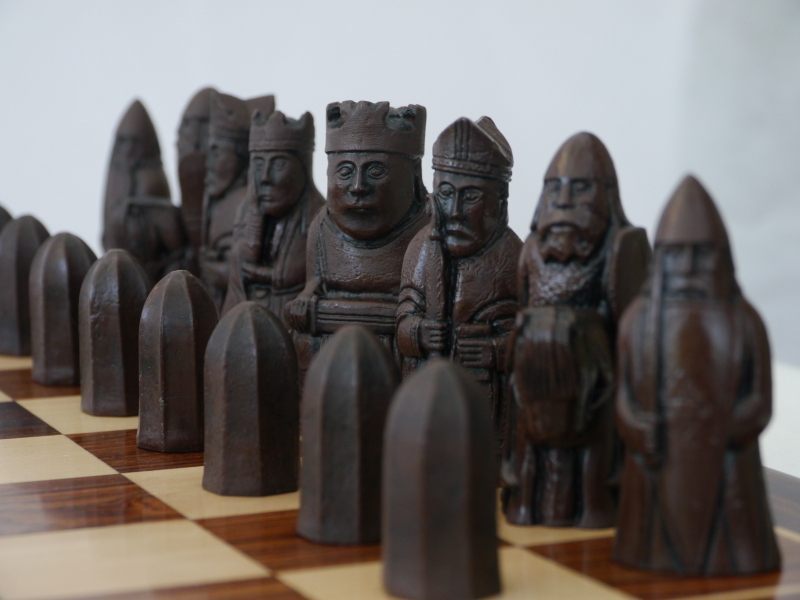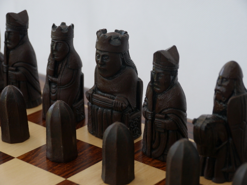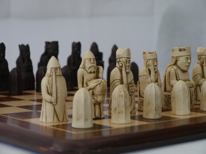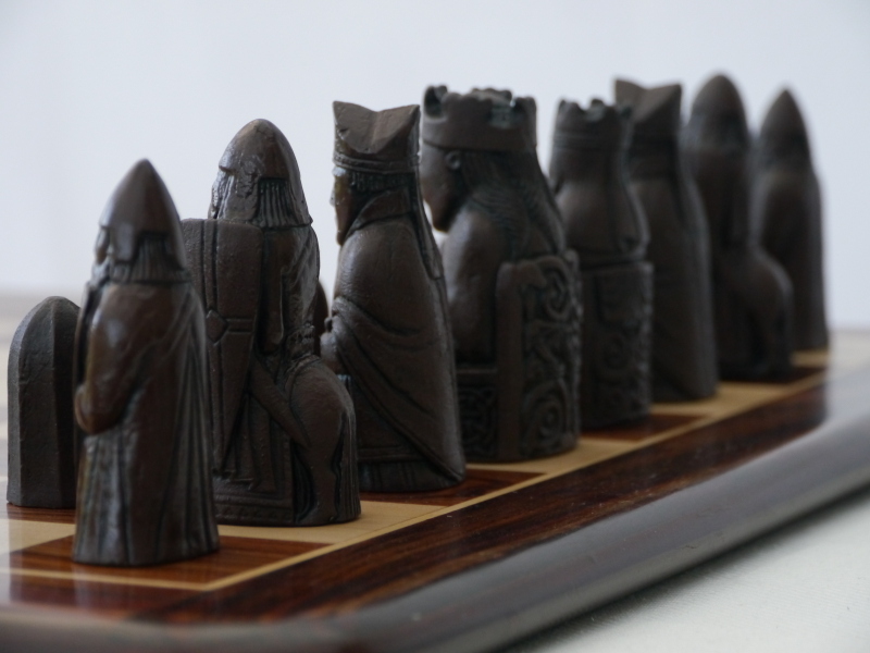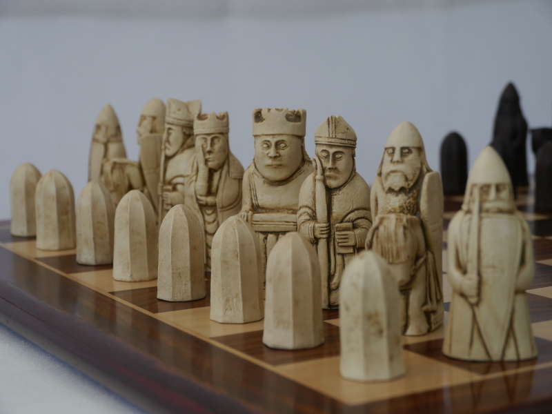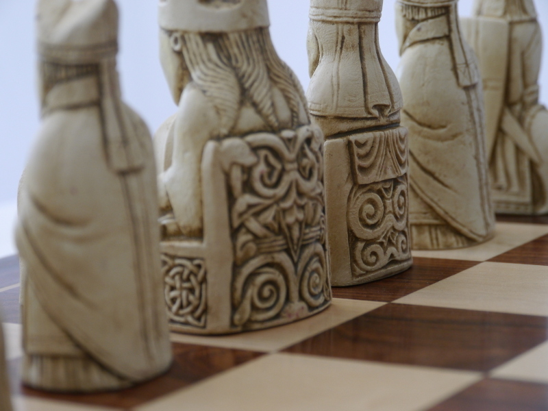 These amazing pieces have great characters carved on them which brings back the era to life. The kings and queens feature stately king and queen sitting at their thrones The Knight pieces resemble knights on horseback. Other characters on the chess pieces are the wild-eyed berserkers.Â