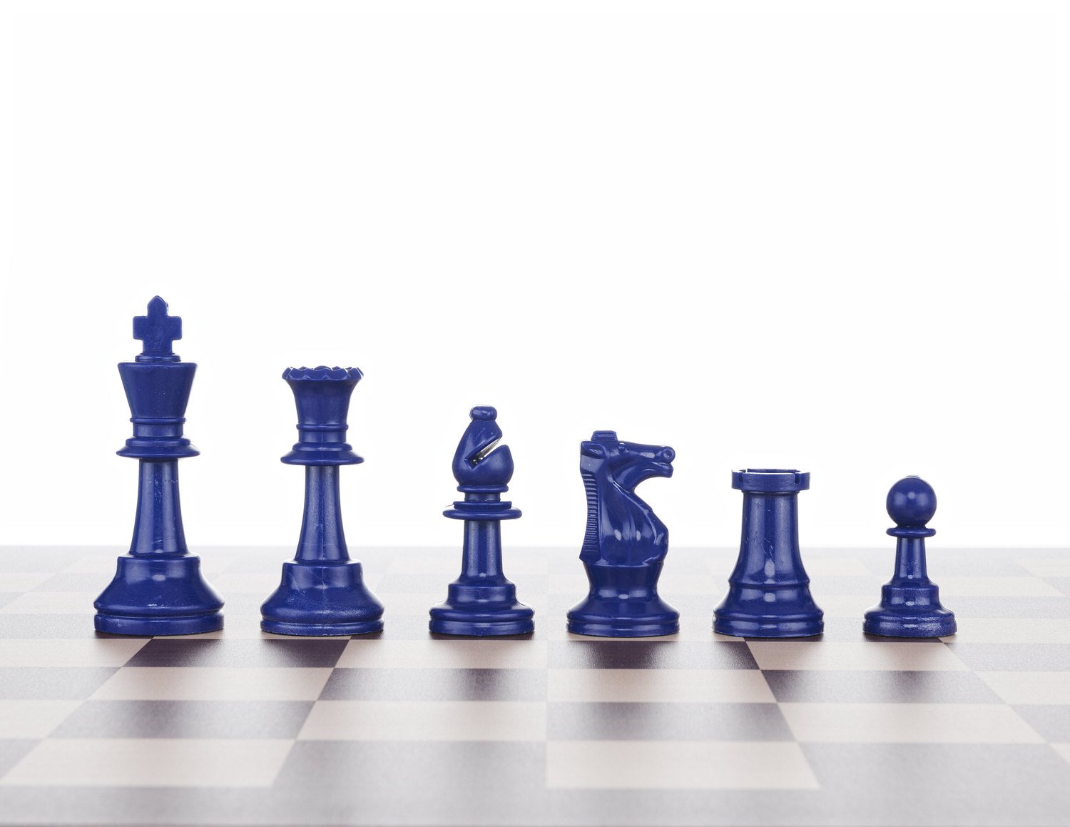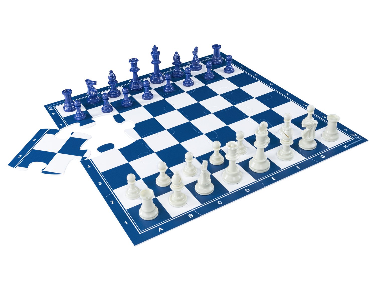 Das 50 cm große Jigchess Schachspiel-Set in Blau enthält die Schachuhr DGT 1001 – weiße, Plastik und gefilzte Schachfiguren im Staunton-Design, die im Polybeutel geliefert und mit einem einzigartigen Jigchess-Brett kombiniert werden. Es ist perfekt auf Reisen und sind leicht eingepackt. Das tragbare Schachbrett besteht aus 16 Figuren und ist aus einer feinen, weißen PVC-Hartschaumplatte hergestellt. Es hat die Standard-Turniergröße des Schachbretts.