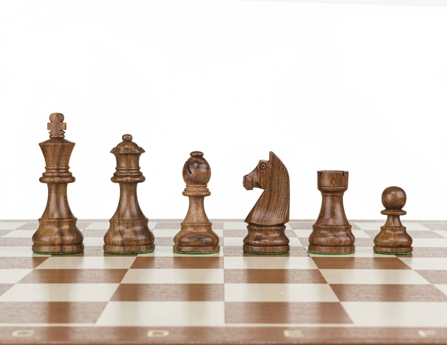 Staunton Standard Chess Pieces are for tournament or casual play. With 3.75 inch king they perfectly illustrate classic Staunton design. Made from sheesham and boxwood wood these chess pieces are weighted and felted. Total weight of the set is 1.10kg.