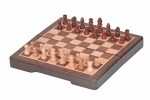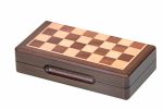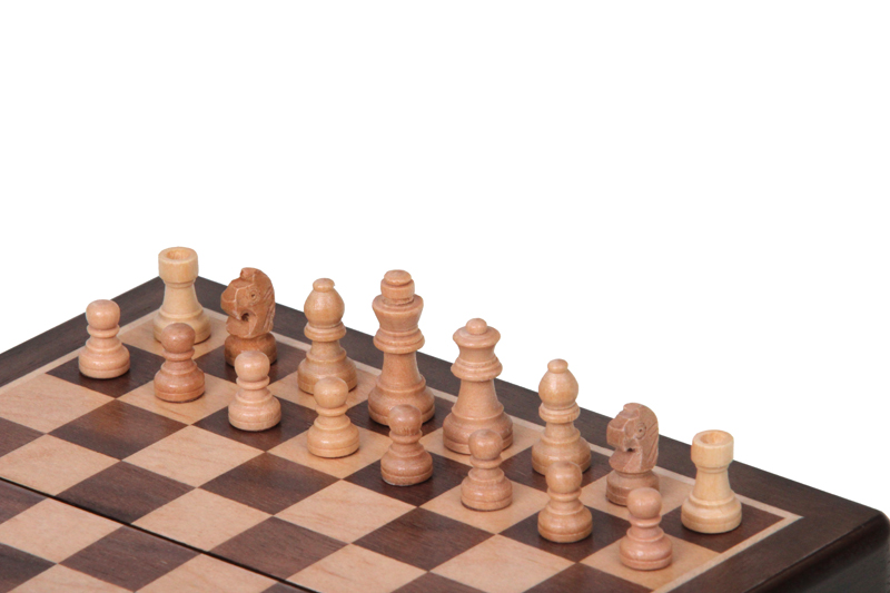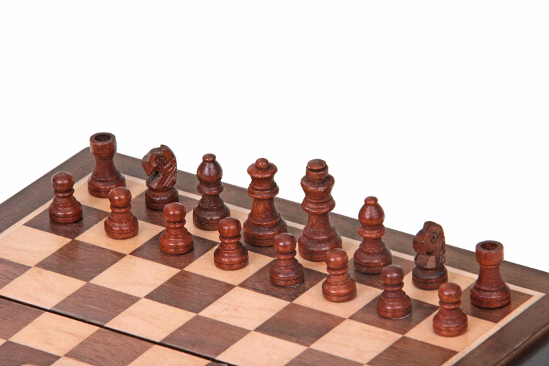 The 6 inch magnetic pocket chess set is the smallest magnetic chess game in our range. The chessboard is inlaid with maple and walnut. It has a compartment lined with soft material for storing chess pieces. The small chess pieces have very strong magnets. The set is perfect for traveling and enjoying games on the go.
