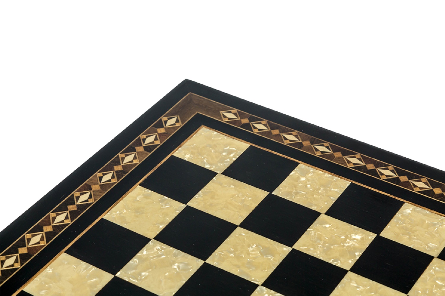 Luxury wooden chess board with legs and handmade wooden mosaic details